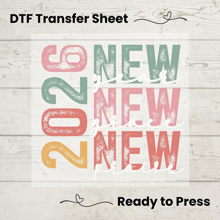 Start 2026 with positivity, faith, and fresh energy with this “New Year • New Grace • New Praise” DTF Transfer! 🎉✨