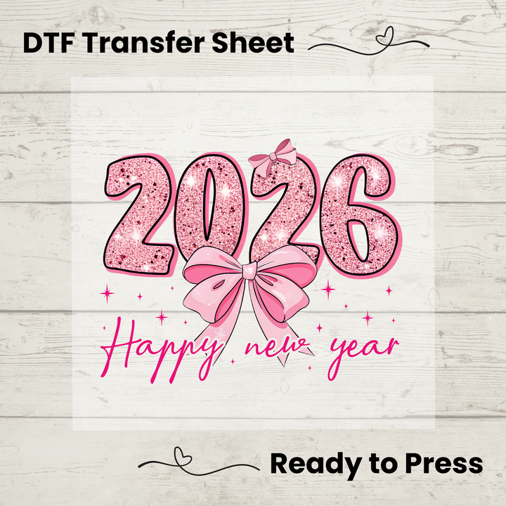 Start the new year in style with this stunning 2026 Pink Glitter Bow DTF Transfer! 🎀✨