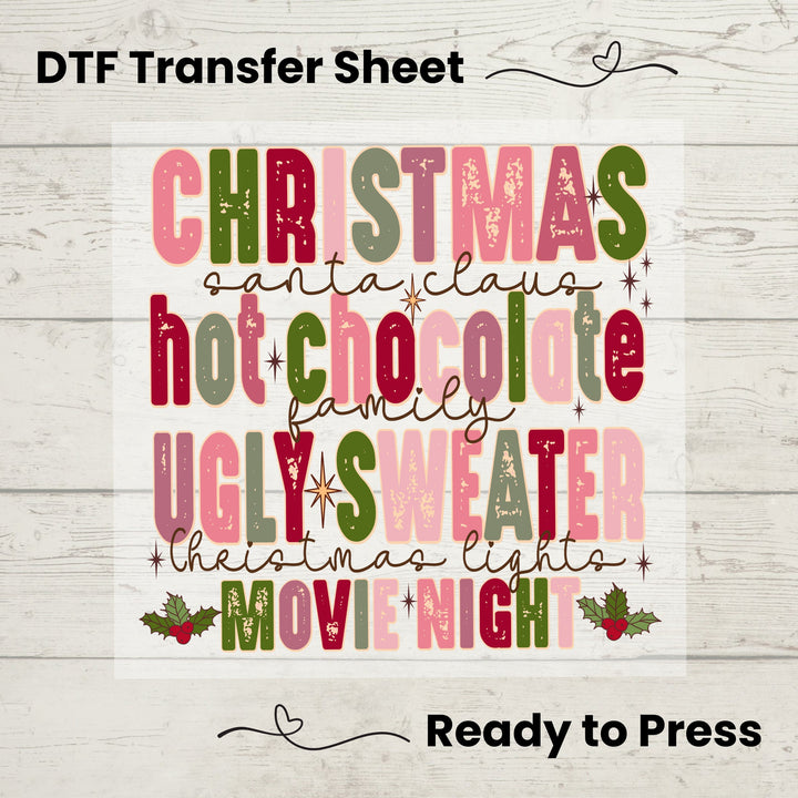 Christmas Hot Chocolate Quote Retro DTF, Dtf Transfer Sheet, Ready to Press, Custom Dtf, DIY Heat Transfer, Christmas Gift, Holiday Sweater