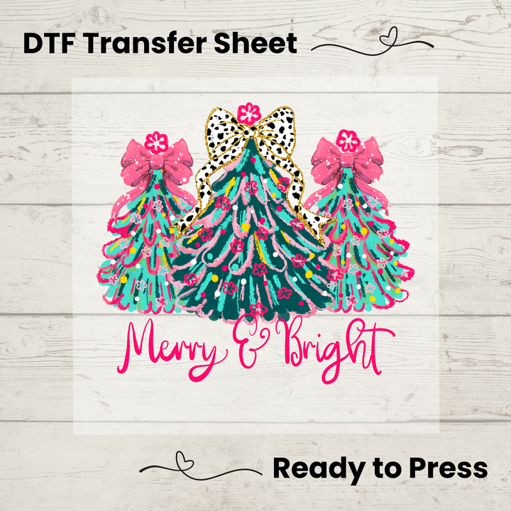 Merry & Bright Christmas Tree DTF Transfer Sheet: Ready to Press
