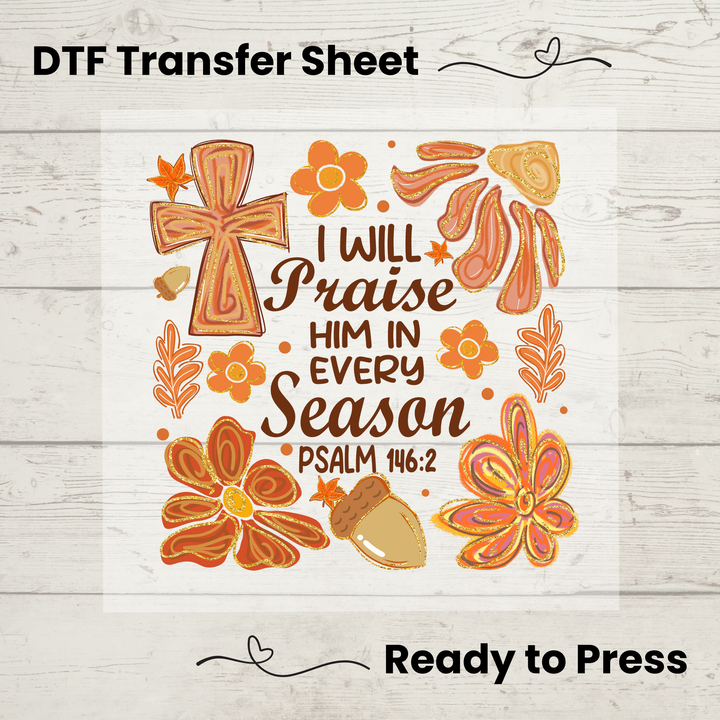 Fall Christian DTF Transfer Sheet: Psalm 146-2, Ready to Press