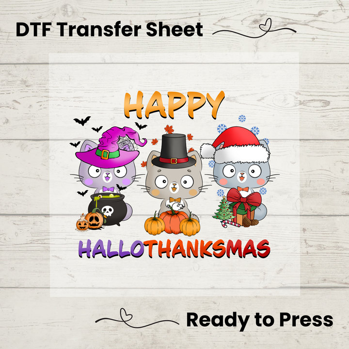 Cats Hallowthanksmas DTF Transfer Sheet: Cats Ready to Press