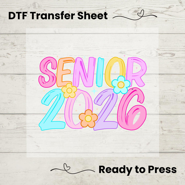Bring the beauty of school to your apparel with this "Senior 2026" DTF Transfer Sheet. Perfect for creating custom t-shirts, hoodies, or tote bags, this transfer is designed to deliver stunning, high-quality results with every press. The DTF (Direct to Film) technology ensures a durable and vibrant print that can withstand wash after wash, making it ideal for both personal projects and commercial items. Transform plain garments into eye-catching pieces of wearable art that resonate with the spirit of adventure.