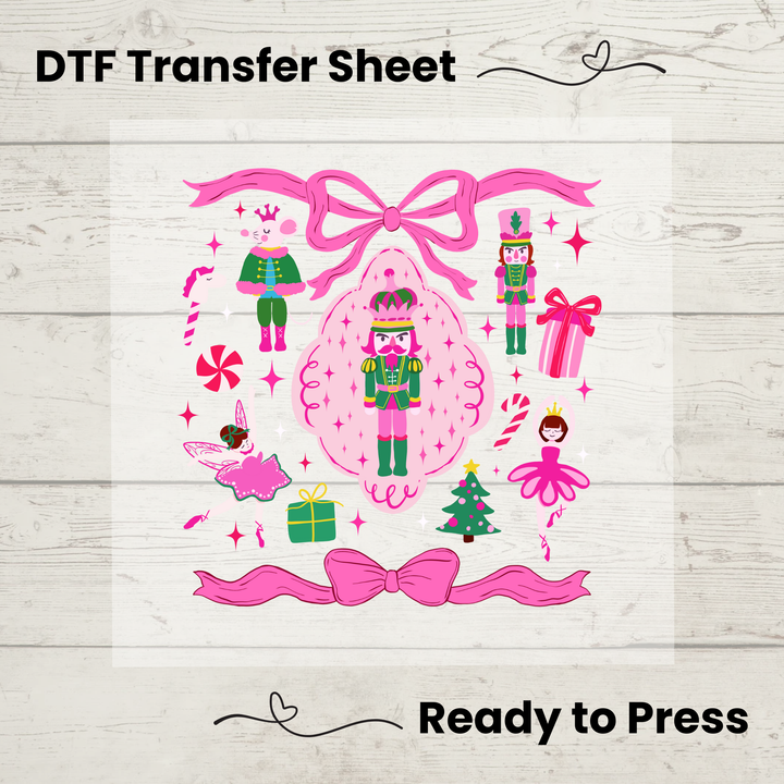 Pink Nutcracker Christmas DTF Transfer Sheet - Ready to Press