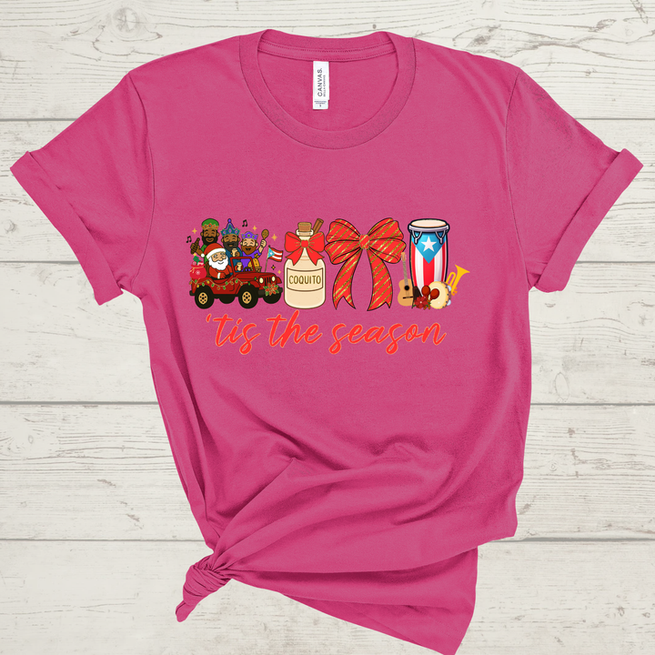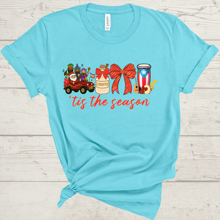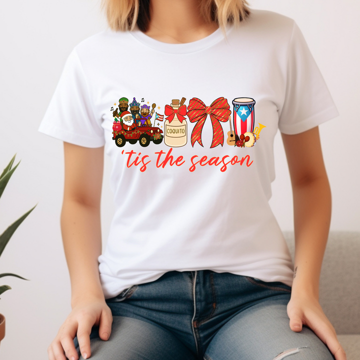 Celebrate the magic of a true Boricua Christmas with our festive “’Tis the Season” Puerto Rico Holiday Shirt! 🎄🇵🇷