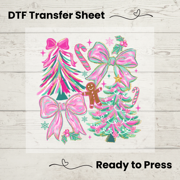 Christmas Coquette Tree DTF Transfer Sheet: Pink Bows